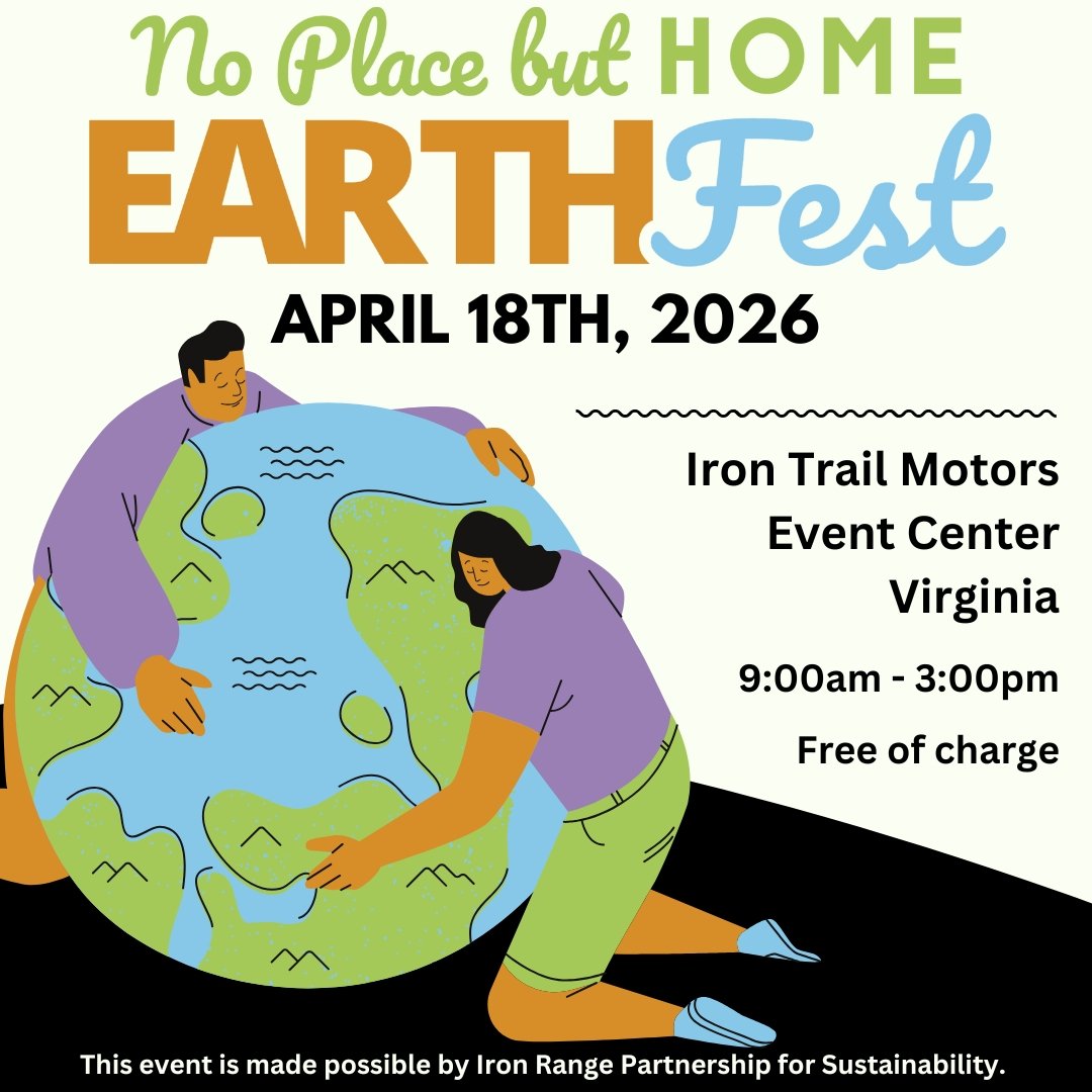The Iron Range Partnership for Sustainability is excited to announce the 2026 Iron Range Earth Fest to be held on Saturday, April 18th, 2026, at the Iron Trail Motors Event Center in Virginia, Minnesota.